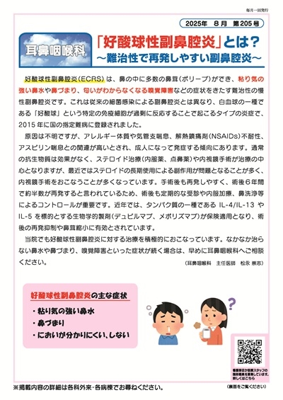 タイトル:「好酸球性副鼻腔炎」とは? ~難治性で再発しやすい副鼻腔炎~